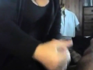 Hubby gets a handjob wearing girls panties
