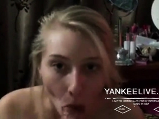 20yr jenny swallowing cum out of a big cock
