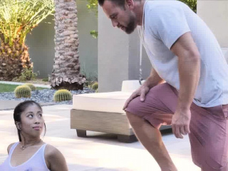 Fucking big tit wet Asian outdoors in the shower