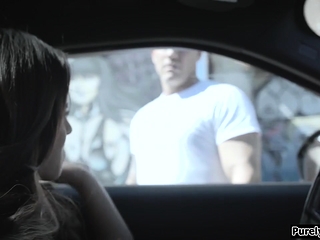 Trapped busty 18yo girl needs to fuck a guy to get car fixed