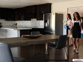 Busty boss licks her maid and squirts