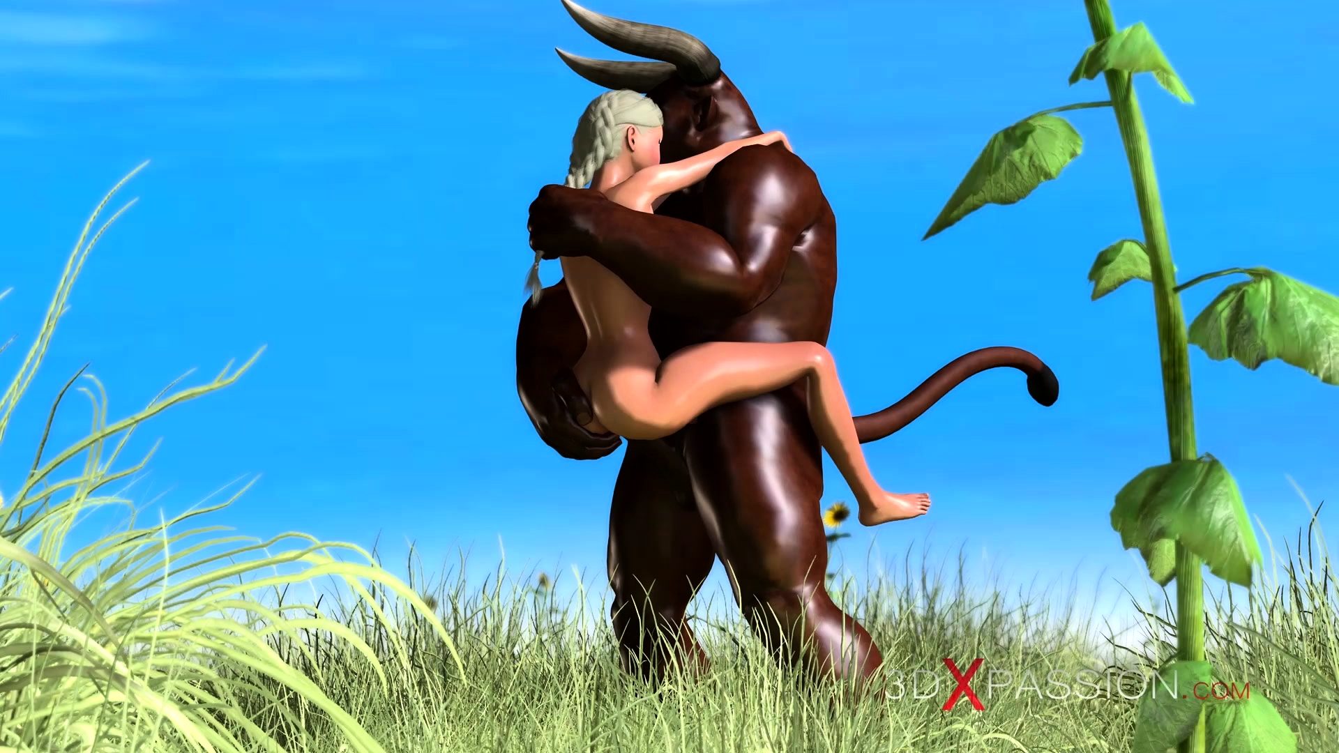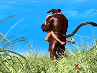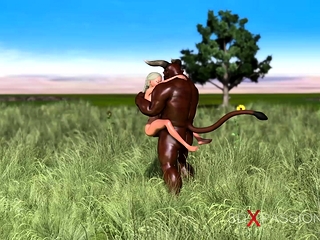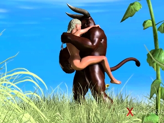 Trans sweet schoolgirl gets fucked hard by minotaur outdoor