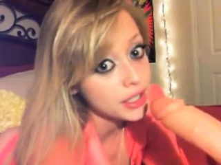 Blonde blow and deepthroat dildo in webcam 2