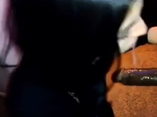 White girl gags herself on black dick