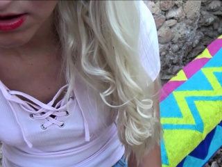 german skinny blonde teen outdoor facial in public