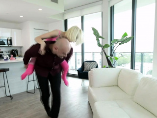 Big dude throatfucks petite blonde gf