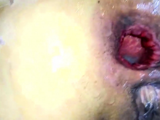 Gigantic anal bottle and dildo fucked Latina