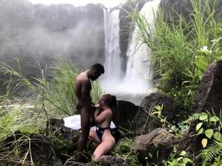 Beautiful white chick gets blacked by waterfall