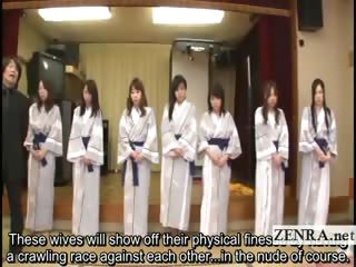 Subtitled group of Japanese milfs strip for racing game