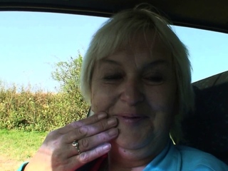 Very old blonde grandma gives head in the car
