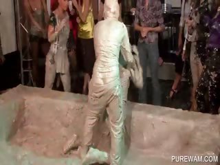 WAM lesbians wrestling in messy mud