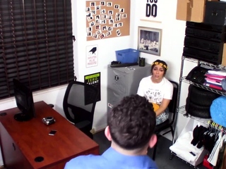 Brunette teen Lilly Hall slobbs on a huge fat cock