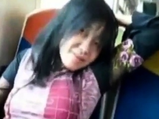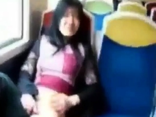 Asian milf rubs her clit on a train.