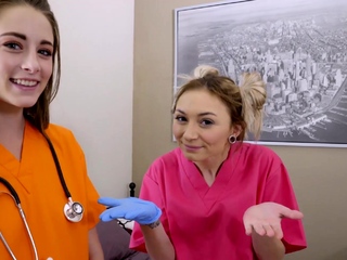 Cute blonde nurse massages her stepbrothers big cock