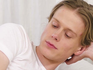 Cute twink gets his asshole trained with a big dildo