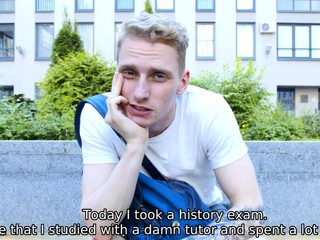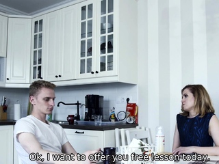 TUTOR4K. Guy makes body of professor in stockings shake