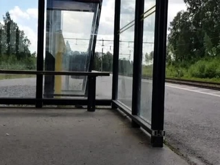 HannaTransa Chastity Crossdresser outdoors at train station.