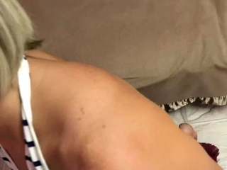 Naughty blonde Red August goes down on some dick