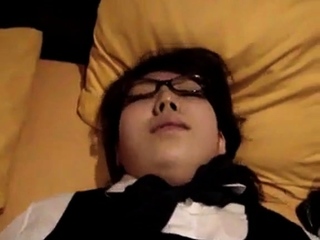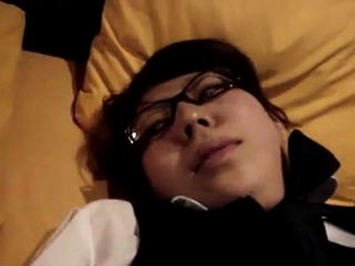 Japanese glasses girl blowjob and fuck