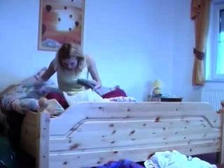 Romantic blonde young Jessika is masturbating era her
