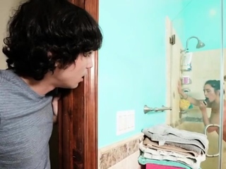 MILF swaps shower dildo for cock in the ass