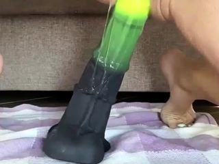 Fucking Giant Dildo Balls Deep in Her Ass