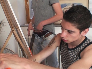 Painting leads to threesome with granny and boys teen
