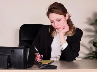 Secretary in stockings shows off feet