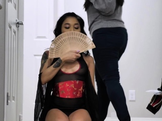 Avery and Krystal fucked David in geisha outfit