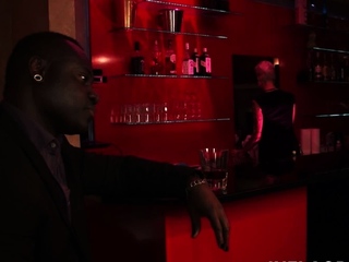 Short haired blonde riding a big black wang
