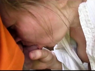 Handjob and blowjob outdoor