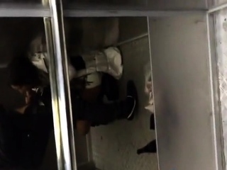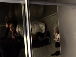 Elevator amateur blowjob