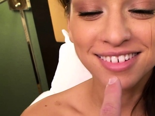 Watch this HOT brunette 18 yr old inhale a 8 inch dick