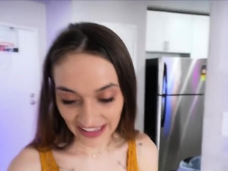 Super sloppy blowjob by perky room mate