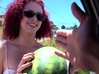 Redhead teen Latina covered in oil for blowjob and fuck