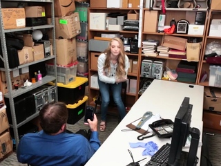 Brunette teen shoplifter footjobs then fucked by an officer