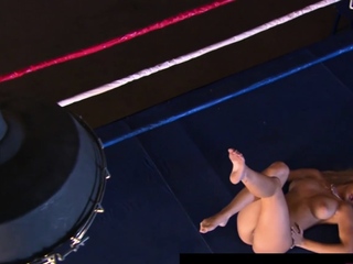 Busty boxer babe gets a sensual massage