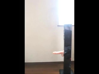 Cute Asian crossdresser cums on rubber cock