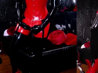 Outstanding Tranny in Red Latex gets Horny Webcam Show