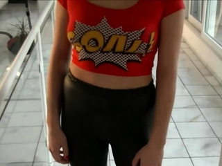quirky blonde on stairs face fuck quickie - facial