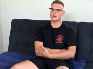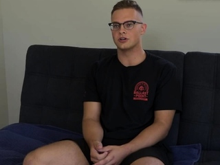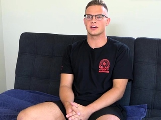 Unshaven amateur stud jerks at audition