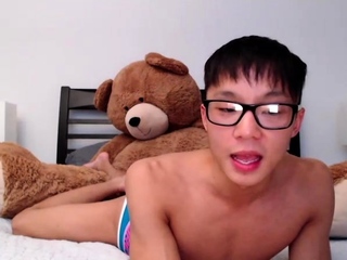 Cute brunette gay Asian twinks having sex under the shower