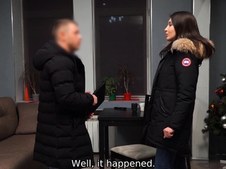 DEBT4k. Hot brunette enjoys unplanned sex