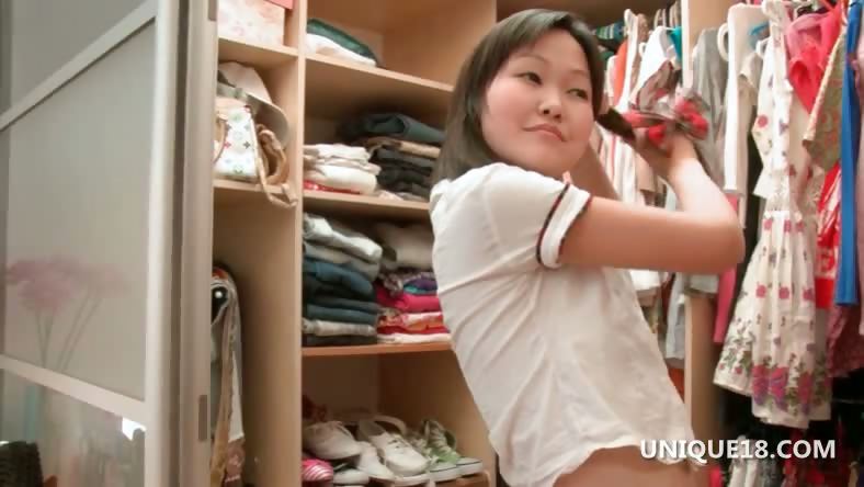 Asian Sakari playing dress up goes naked