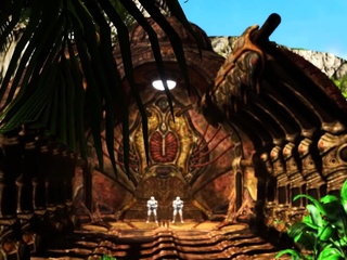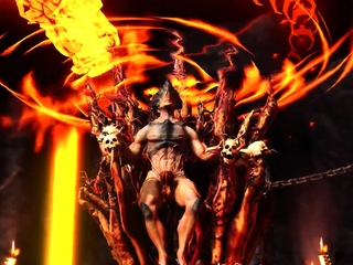 Alien fucks hard a sexy blonde in her ass in the fire cave