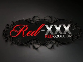 Horny housewife Red XXX masturbates in her latex pants