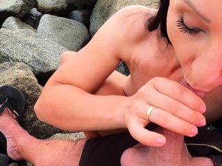 Real Blowjob Date pick up with german skinny milf in public