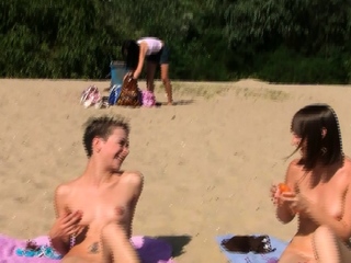 Nude beach girl gets together with her friends
