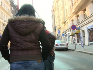 Busty brunette fatty picks up young guy from street