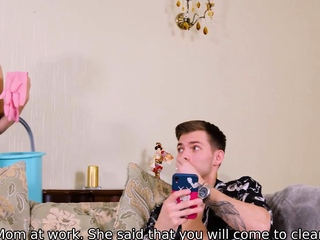 Maid has a tight shaved pussy that student willingly drills